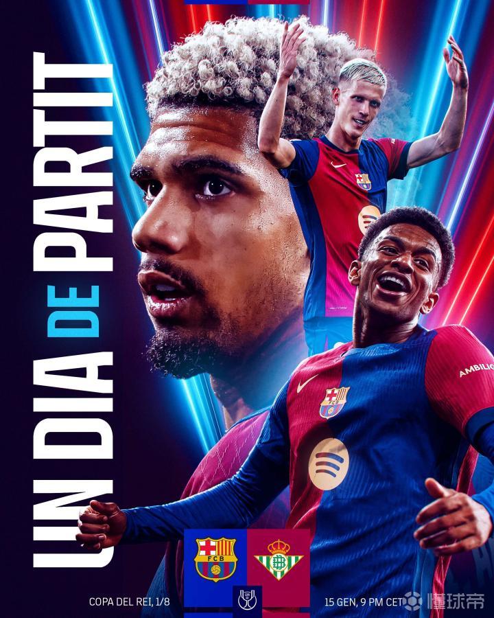 北京时间1月16日凌晨4点,西班牙国王杯1/8决赛即将展开,巴塞罗那将迎战皇家贝蒂斯。在赛前,巴萨官方发布了一份赛前海报,引发了球迷们的广泛关注。这张海报中,原本备受离队传闻困扰的阿劳霍显得特别引人注目,他与奥尔莫和阿莱士-巴尔德一同出镜,为这场即将到来的比赛增添了一丝神秘色彩。
